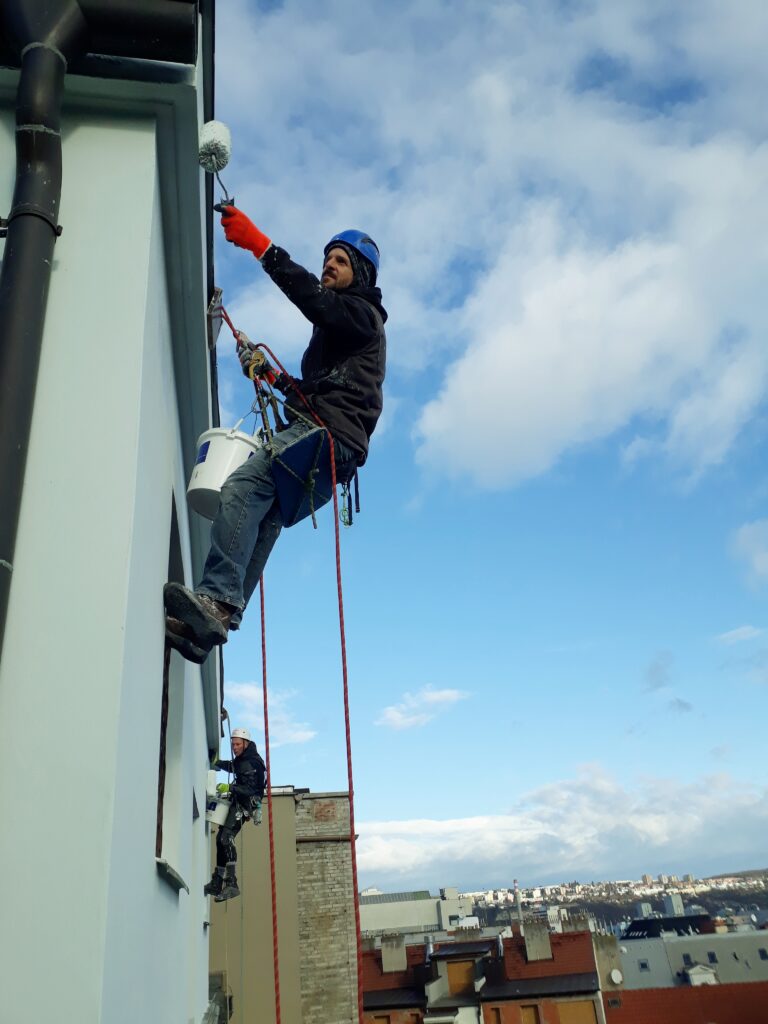 Venkovní fasády je natírají po zednických úpravách. Fasáda musí být suchá, čistá, zednické opravy musí být zcela vyzrálé. Natírá se nejdříve penetrace a pak základový a finální nátěr. Některé barvy již mají v prvním nátěru zamíchanou penetraci a proces nátěru fasády se tak podstatně zrychlí. Používáme osvědčené barvy s protiplísňovou složkou a dlouhodobou trvanlivostí.