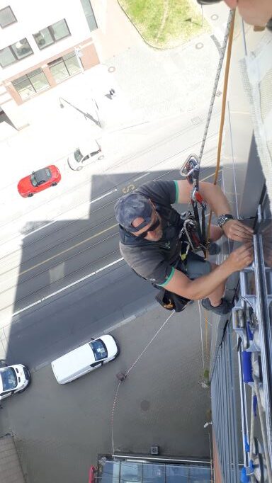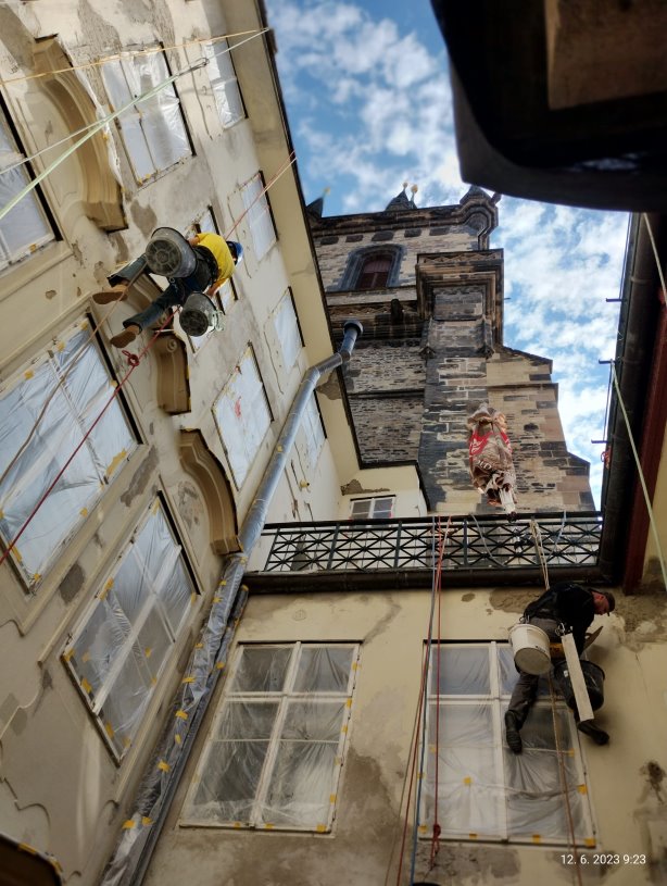 Pracujeme pomocí horolezecké techniky; u rozsáhlých oprav můžeme nabídnout řešení i pomocí lešení.