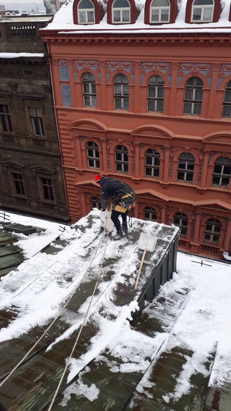 Odstraňujeme sníh, led a rampouchy ze střech, komínů, žlabů a svodů.